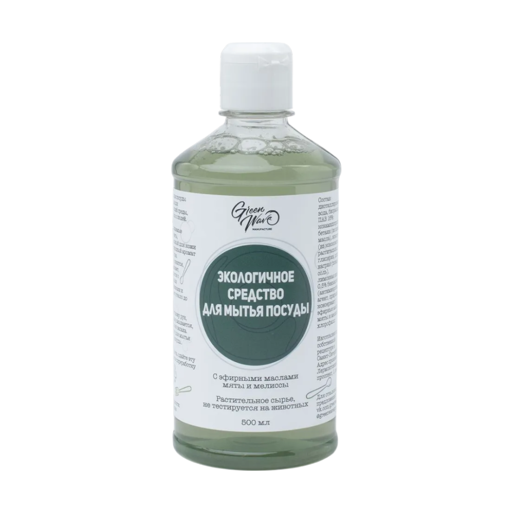 Состав: дистиллированная вода, биоразлагаемые ПАВ 16%: кокосульфат (из кокосового масла), кокамидопропил бетаин (из кокосового масла), растительный глицерин, хлорид натрия (поваренная соль), лимонная кислота, 0,5% бензоат натрия (антимикробный агент, природный консервант), эфирные масла мяты, мелиссы и хлорофилл